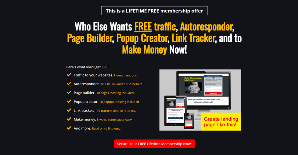 LeadsLeap is a bit unusual. It’s a free traffic exchange and ad platform with some marketing tools thrown in. The idea is you view other members’ ads to earn credits, then use those credits to run your own ads. Along the way, you get some free tools: there’s a free email autoresponder (with unlimited lists), a landing page/popup builder, a banner maker, and a referral system. Think of it like a hybrid “pay-to-click” scheme plus a basic email marketing system.