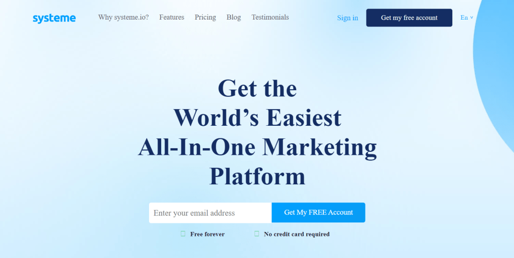 For most people, especially when starting or on a budget, Systeme.io shines as the best all-in-one marketing platform. It covers virtually everything in one place, whereas others might force you to add several subscriptions (like ClickFunnels + ActiveCampaign + Teachable, etc.). It’s probably the best funnel builder for small business thanks to its simplicity and price.
