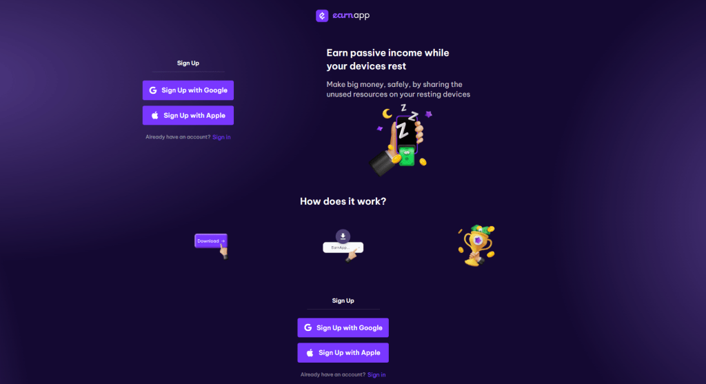 EarnApp is a passive income app created by the team behind Honeygain. The main way to earn is very simple: install the app on your computer or phone, and let it share your idle internet bandwidth. I ran it for a few days and shared about 5 GB of data; I earned a couple of dollars from that. The app also occasionally offers small tasks, but mostly it just runs in the background.