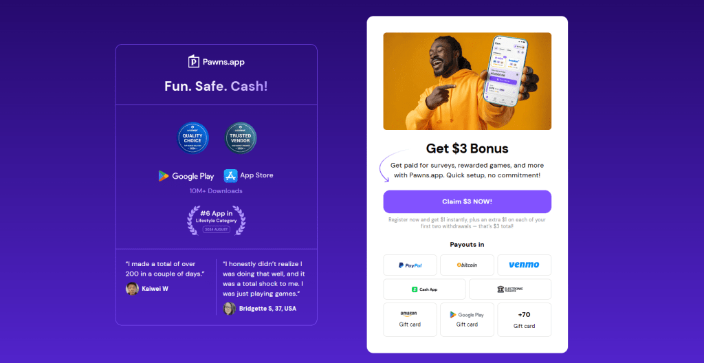 Note: Pawns.app is 100% legitimate and one of the best GPT apps that actually pay, in my opinion. The company is registered, the reviews are great, and the $5 payout threshold is fantastic. I highly recommend giving Pawns a try if you want some background earnings. It’s like a tiny cash faucet running in the background while you use your computer. Pawns.app is absolutely one of the legit GPT sites that actually pay decent passive income.