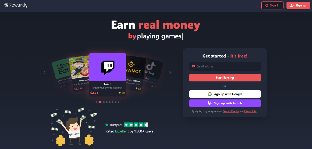 Rewardy is a newer platform with a cool twist. You can earn money by doing things you might already do for fun, like watching Twitch streams or listening to music. When I signed up, I connected my Twitch account and just left some music playing. Rewardy gave me “coins” for each valid minute of listening or watching. They say 1,000 coins = $1.